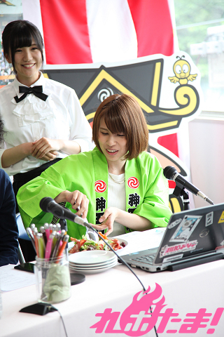 3人がカフェでのちょっぴり恥ずかしい口上も披露し、華やかで賑やかな雰囲気に包まれるなか、「お祭りと言えばこれ!」というチョコバナナやイカ焼きなどが運ばれ、文字通りお祭り気分を味わう出演者たちの姿が微笑ましかった。
