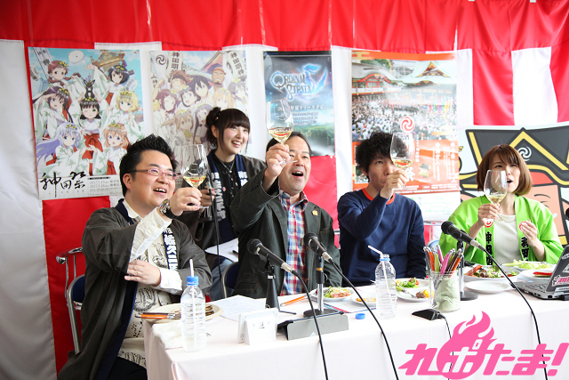 続くゲストは『名探偵コナン』や『犬夜叉』などを手がけた諏訪道彦、『機動戦士ガンダムUC』や『ガンダム Gのレコンギスタ』などを手がけたサンライズの小形尚弘、両プロデューサー。業界の裏話も飛び出しつつ、4月に神田明神そばにオープンしたばかりの「明神カフェ」のメニューやワインに舌鼓。さらに、現在A-1 Picturesとアニプレックスでそれぞれ取締役、取締役会長を務める植田益朗さんからのメッセージも紹介された。