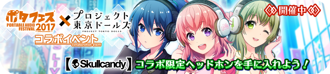 以下の期間中、「ポタフェス」とのコラボを記念した期間限定ゲーム内イベントを開催いたします。本イベントでは、コラボ限定ストーリーが登場する他、人気ヘッドフォンメーカー「Skullcandy」とコラボした「限定ヘッドフォンアバター」を手に入れることができます。