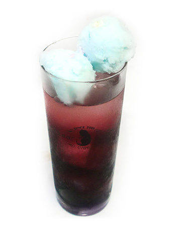 ヴァイオレットシロップ×ウェルチグレープジュース×ソーダ+ラムネシャーベット