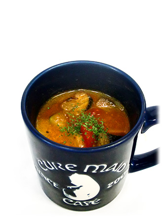 温かいミネストローネスープをマグカップでどうぞ。