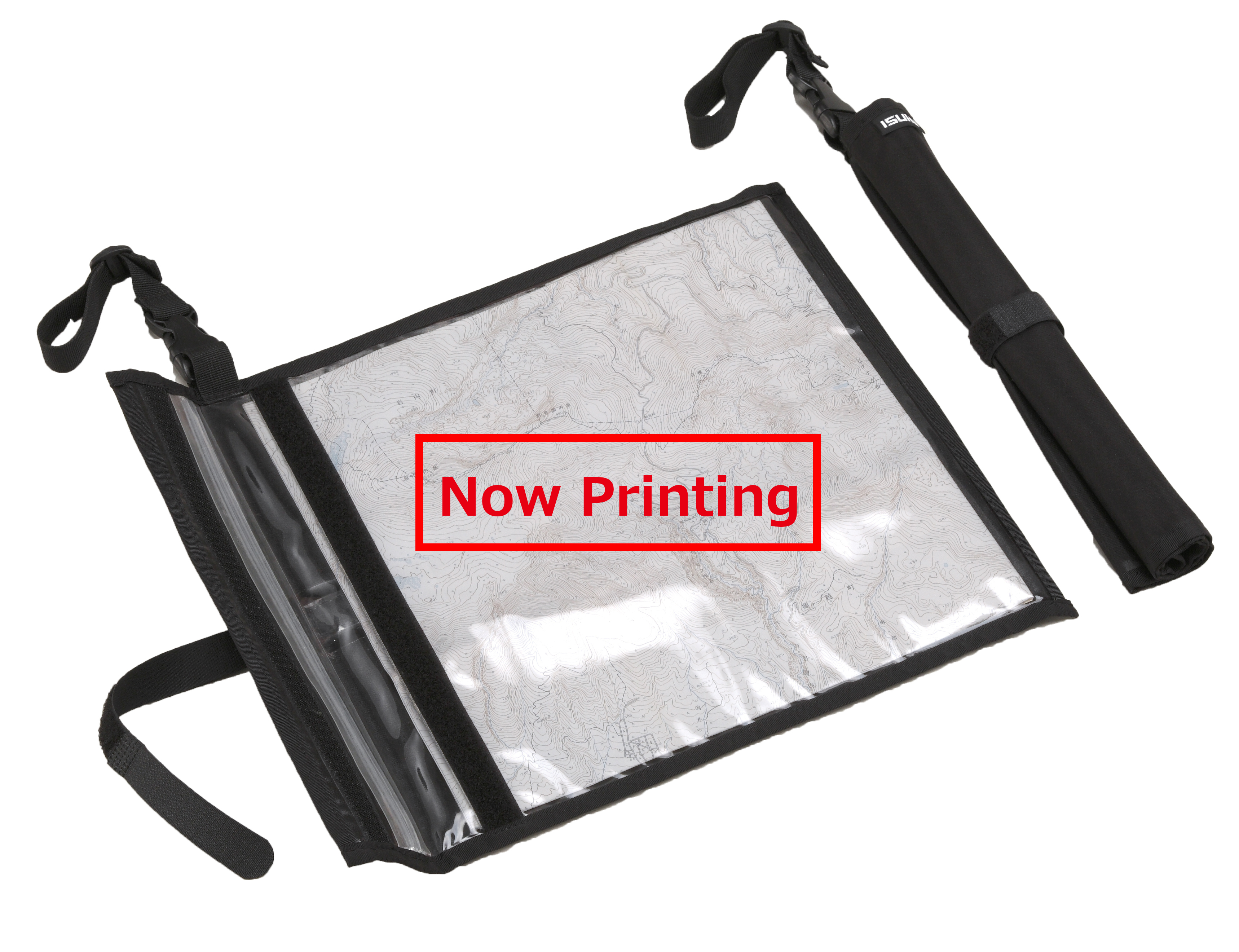 ■ドライマップ(イスカ社):TPU素材とレールシールを併用し、防水性に優れたマップケースです。ナイロンテープをザックのショルダーベルトに固定すれば、歩行中に上部のワンタッチバックルで取り外しが可能です。