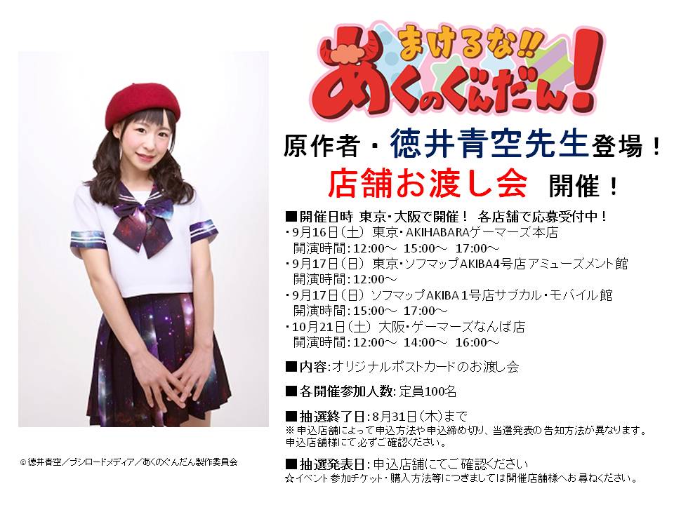 原作者・徳井青空先生が登場し、各店舗にて、オリジナルポストカードのお渡し会の開催も決定しています。9月に東京、10月に大阪で開催されます。