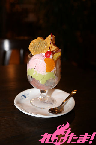 1話でひな子たちが食べていた、たい焼きやきをドーンと乗せたパフェ。