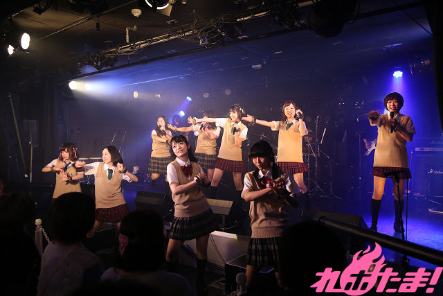 ライブはデビュー曲の「女子会ジャンクション」からスタート。生バンドの演奏のなか、9人が激しいダンスとともに躍動する。続いて3rdシングル「やってやるぜ!」、続いて2ndシングル「マインド・リバース~傷ついちゃった未来~」と歌い上げ、オーディエンスを沸かせた。さらに「ダンジョン・ダンジョ」では軽快なラップも披露。ポテンシャルの高さを見せた。