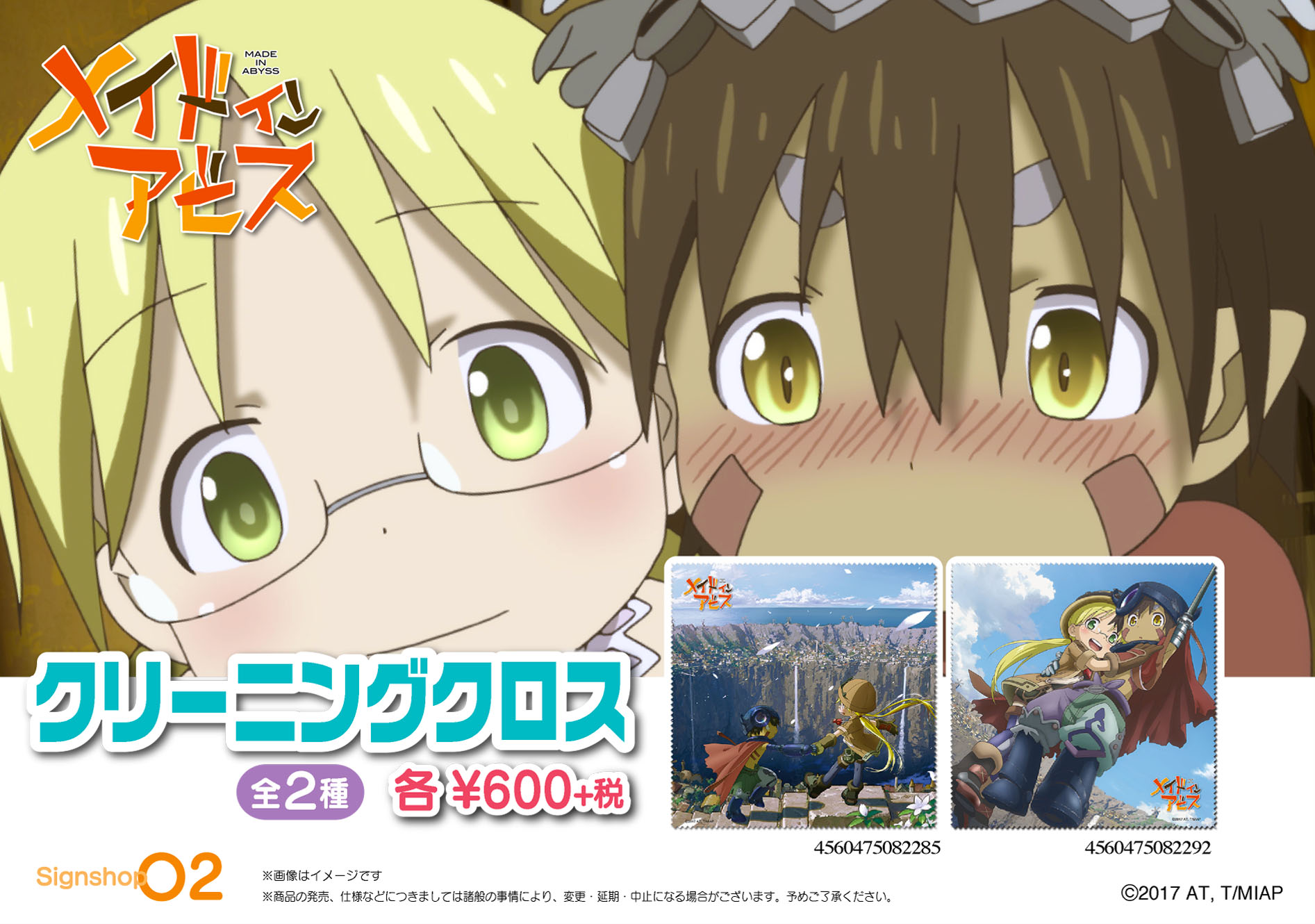 現在放送中のTV アニメ『メイドインアビス』のリコとレグのマウスパッド&クリーニングクロスが サインショップO2 より登場、マウスパッドはソフトステッカーとしても使えます!