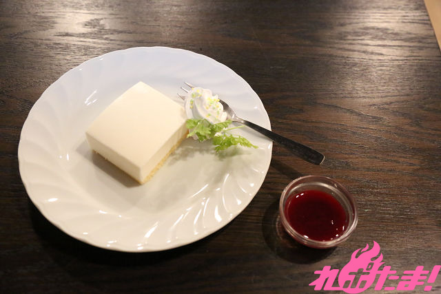 フランボワーズソースが濃厚なチーズケーキとうまく絡み合う。