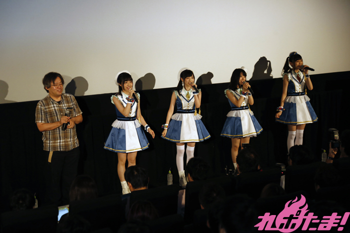 上映が終了すると、Wake Up, Girls!のメンバーから島田真夢役・吉岡茉祐、片山実波役・田中美海、菊間夏夜役・奥野香耶、岡本未夕役・高木美佑、板垣伸監督が登壇しトークショーを行った。