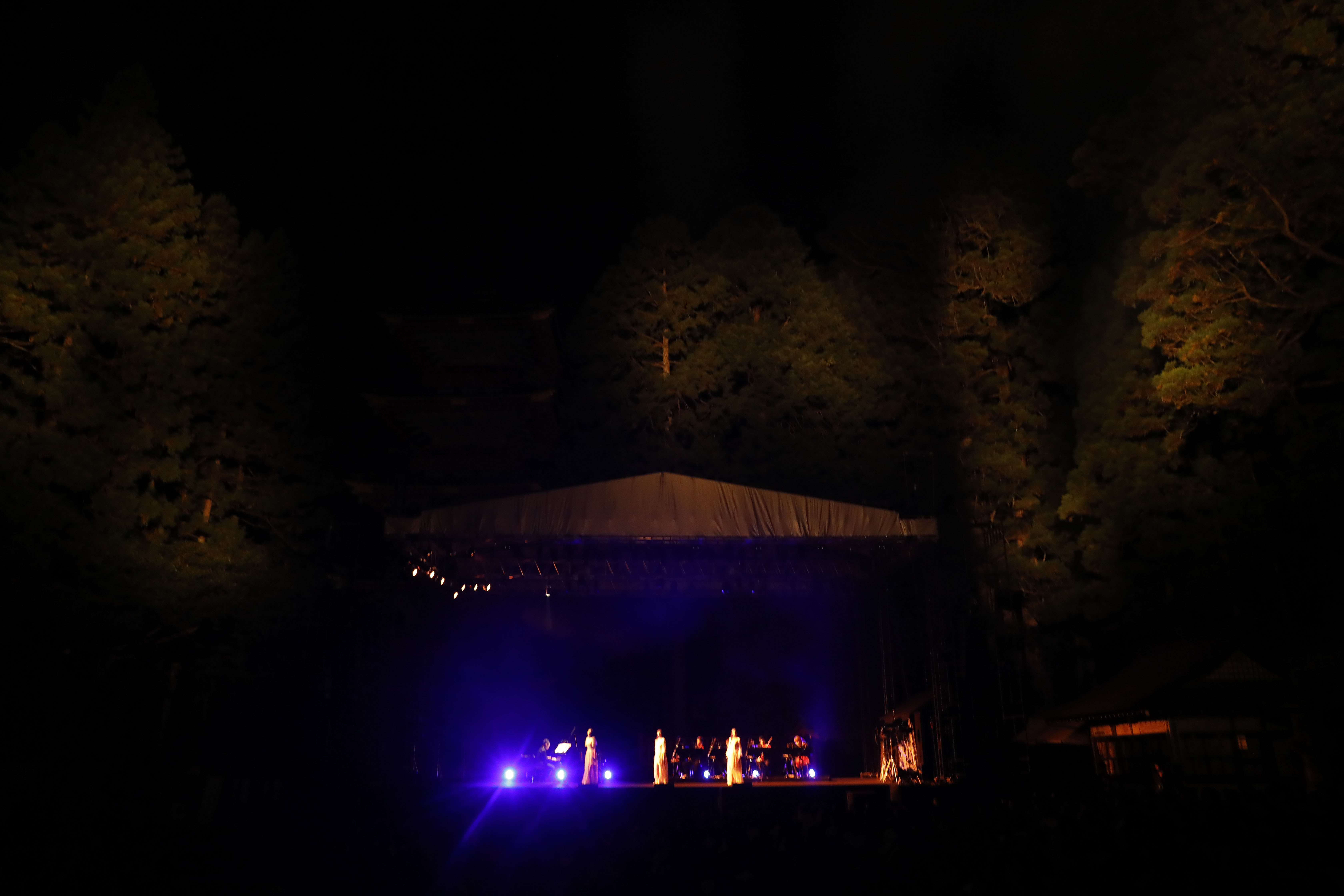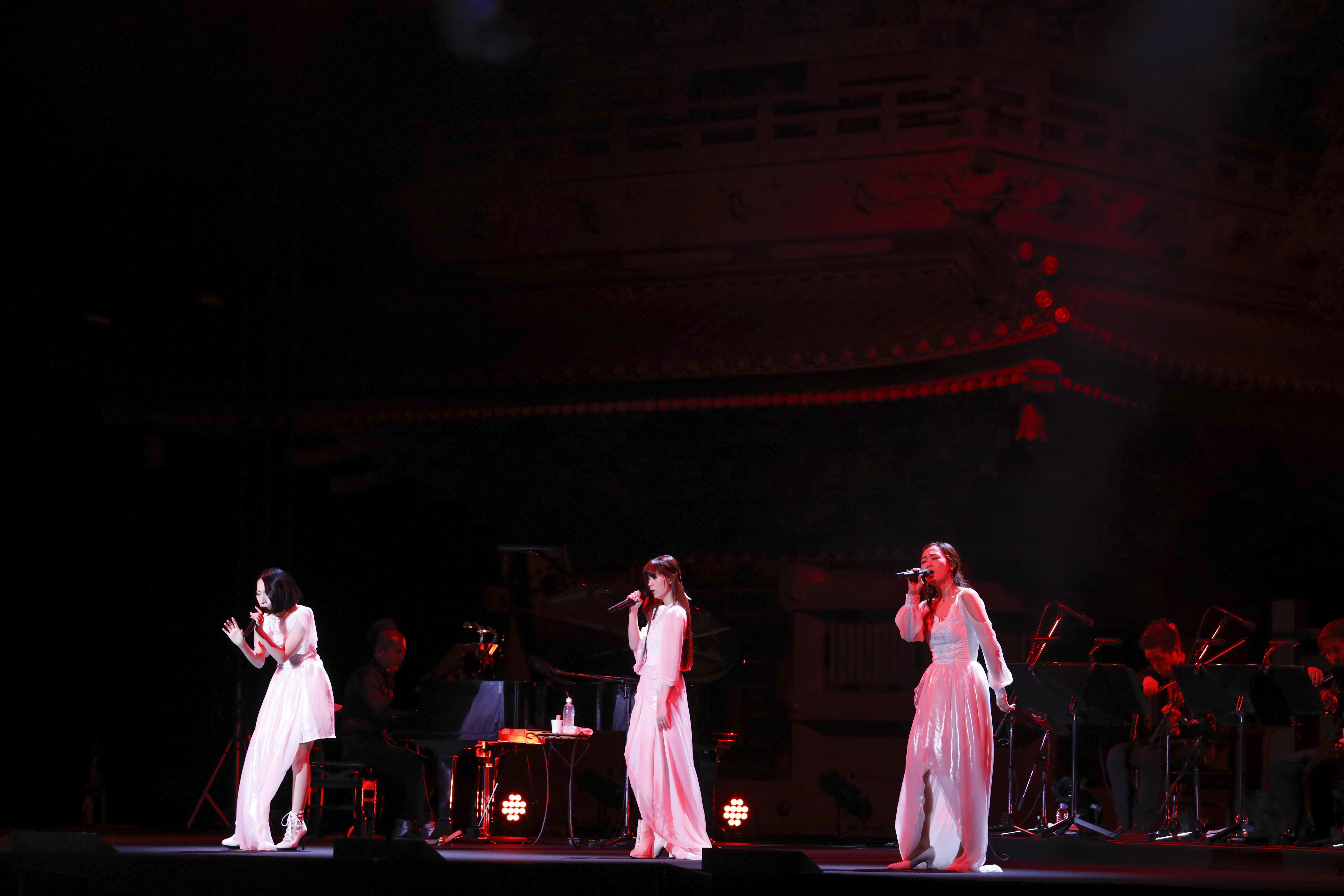 19時、星空が輝き風一つない日光東照宮の五重塔前の特設ステージで弦とピアノのみで構成された“Kalafina with Strings”の演奏によるライブが始まり神殿に相応しい真っ白なドレスを思わせる衣装でKalafinaの3人が登場すると駆け付けた1500人超満員のファンから大歓声と拍手が沸き起こる。