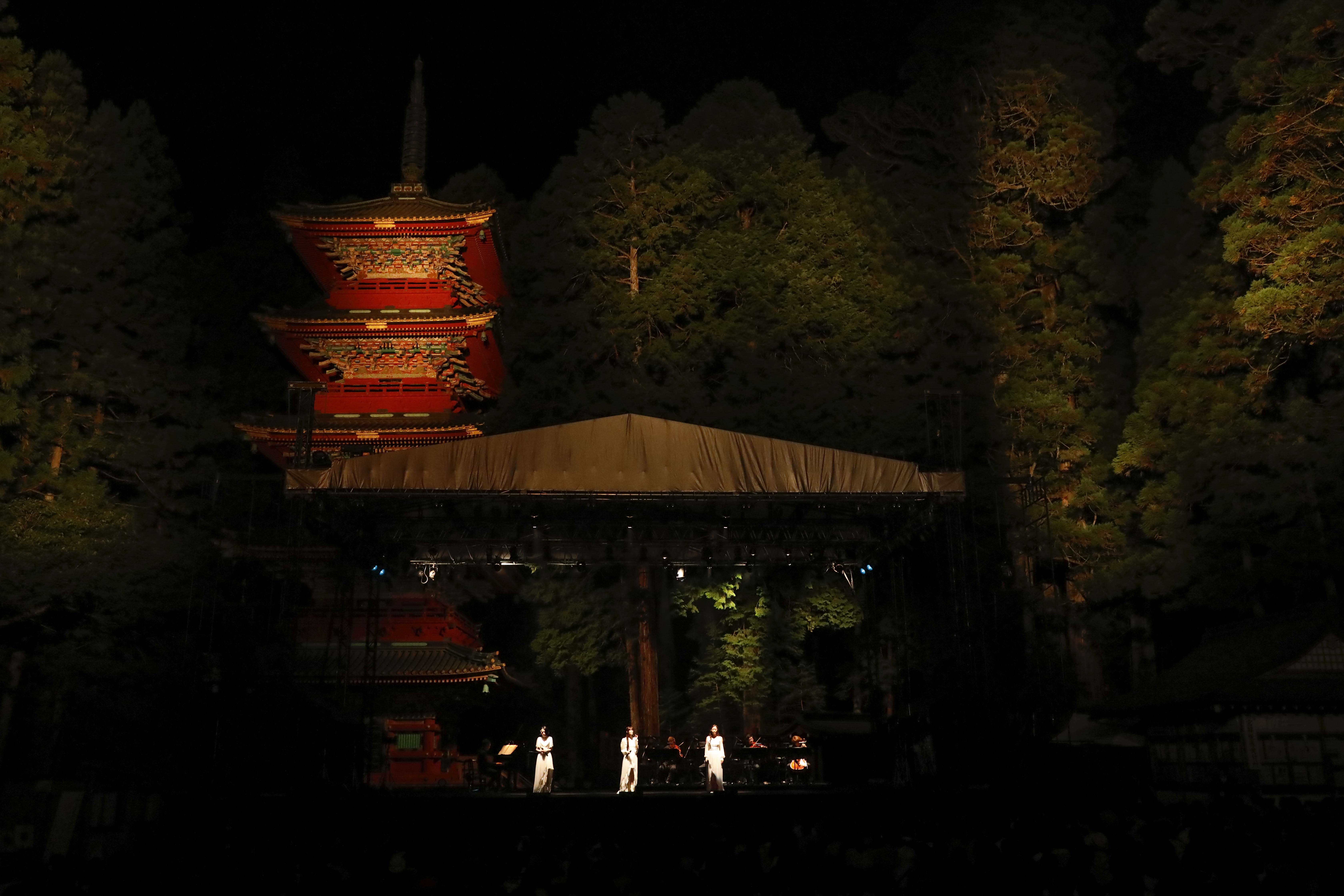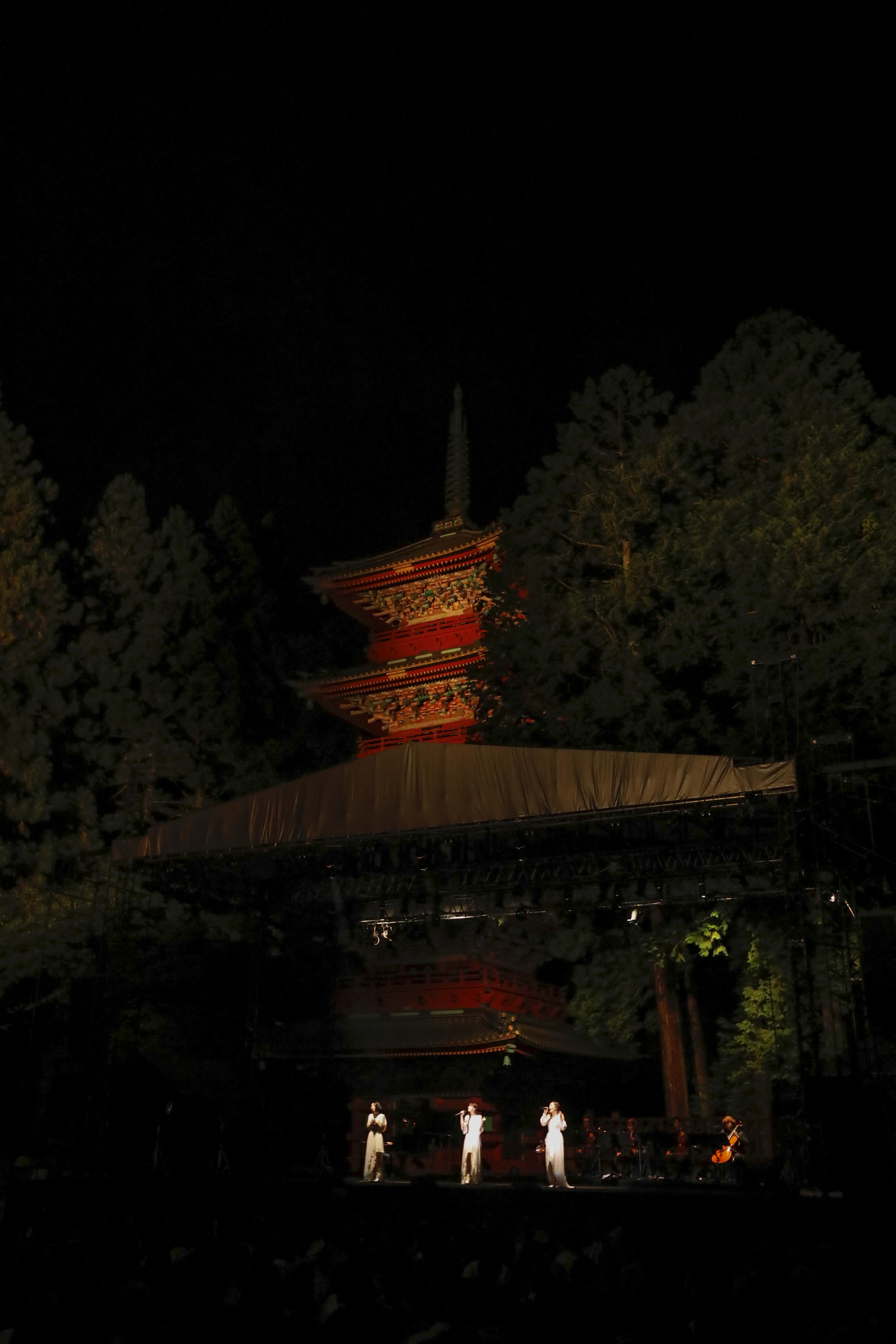 は初めてです。今夜は私たちの音楽と共にこの素敵な自然をたっぷりと楽しんでください」(Wakana)「今日は一曲一曲、心を込めてお届けしたいと思います」 (Keiko)「やって参りました日光東照宮! この“特別な空間”で皆さんと音楽で会話する、そんな一夜になったらいいなと思います」