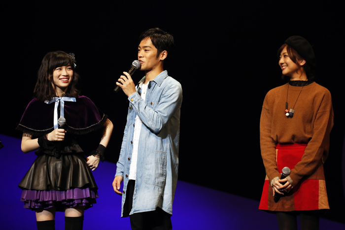 青山吉能と吉岡茉祐は、ステージ上で殺陣を披露するなど、先の読めない時代劇を展開し、観客を沸かせました。Wake Up, Girls!は、最後にOPテーマ「恋?で愛?で暴君です!」も歌唱し、YoutubeでのMVが110万再生も突破した曲にて、可愛く元気なパフォーマンスを披露しました。終わりに青山吉能は「新しい出会いをいっぱいさせて頂いた作品です。原作やアニメのリリースも引き続きよろしくお願いします!」と来場した観客にメッセージを届け、イベントは終了となりました。
