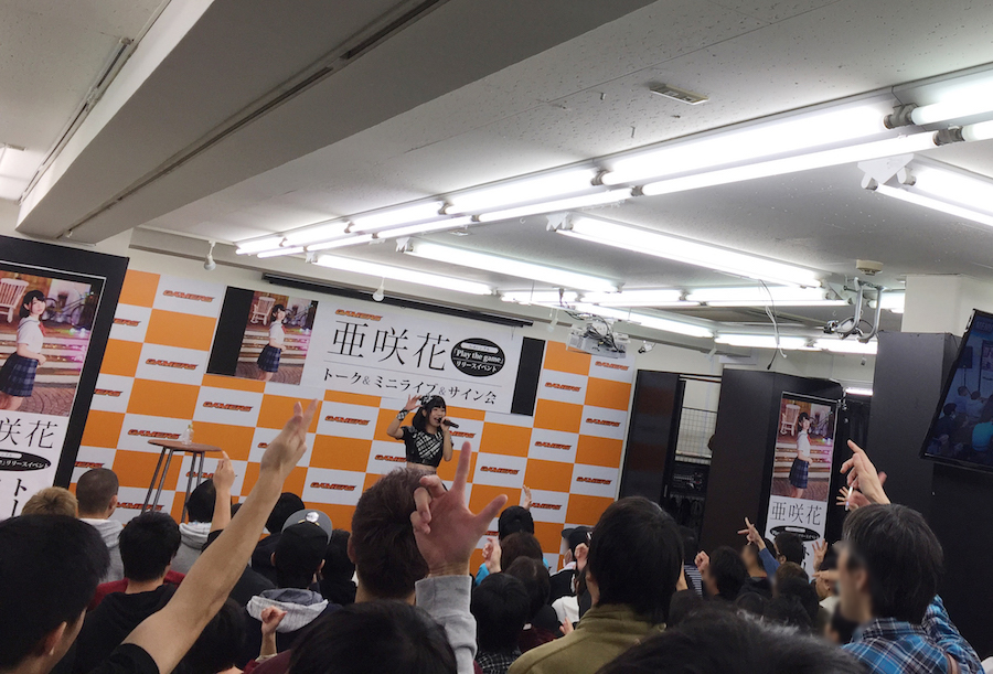 キャンペーン初日となったこの日のイベント内容は、5pb.Recordsの広報担当と亜咲花によるトークと、ミニライブとサイン会。