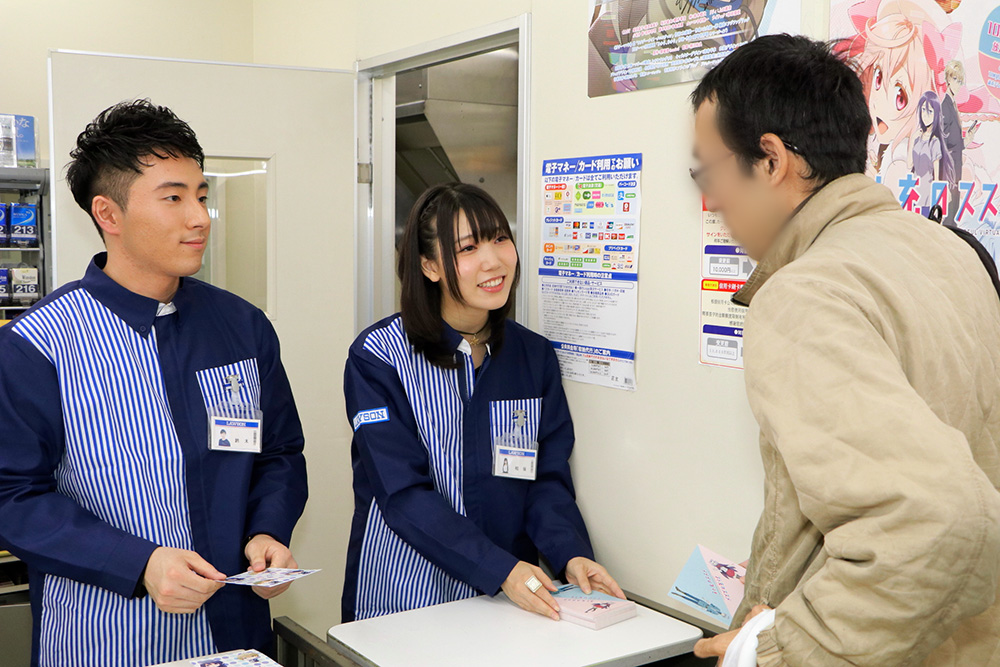 イベント開始時刻となると、何とローソンの制服に身を包んだ鈴木崚汰さん&相坂優歌さんが登場した!制服にはバッチリ名札も付いている本格的な出で立ちで現れた2人に、ファンの目も光る!早速はじまったお渡し会では、作品の感想や思いのたけをぶつけることのできたファンの方々は満面の笑顔。「原作を読んだときに思い描いた通りの声でした!」「1話が本当に面白かったです!」という声に2人も満面の笑顔を見せた。