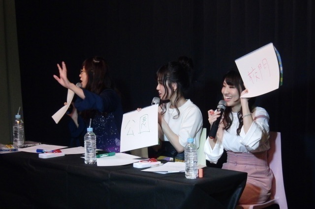 本イベントは、『JCnews』が毎月実施している生放送番組「JCちゃんねる☆ ~まととしずの今夜は女子話~」の出張版。ナビゲーターキャラクターCV担当の吉岡麻耶さん(まと役)と高井舞香さん(しず役)、そして新キャラクター・ひみ役を担当する日岡なつみさんも出演致しました。