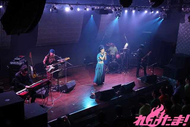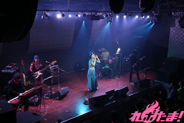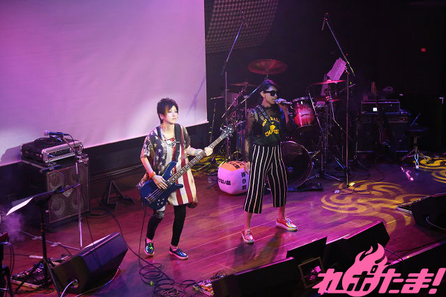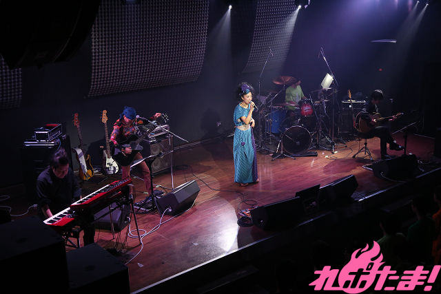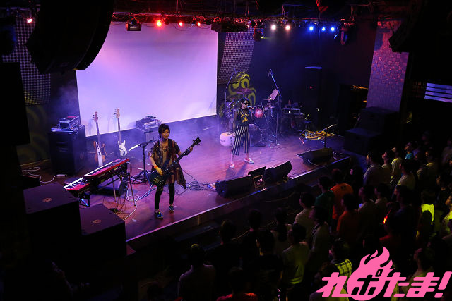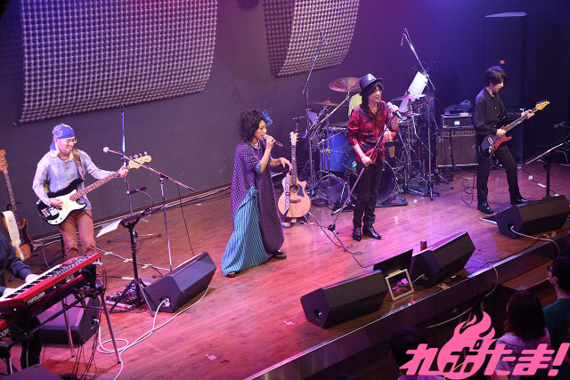 中盤戦は、またもダークネスゾーンに突入。DS用ゲーム『ひぐらしのなく頃に絆 第一巻・祟』主題歌「追想のディスペア」から始まり、PCゲーム『斬魔大聖デモンベイン』EDテーマ「天意悠久」まで、クラップが起こる中で歌い上げた。