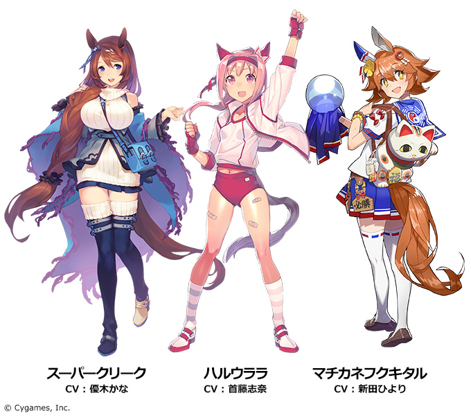 ・アーティスト:スーパークリーク (CV.優木かな)、マチカネフクキタル (CV.新田ひより)、ハルウララ (CV.首藤志奈)