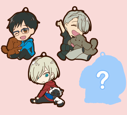 勇利たちのかわいいラバーストラップ。ペットたちをむぎゅっと抱きしめたイラストは、イベントでしか手に入りません。全3種+シークレット1種で、シークレットの絵柄は買ったアナタだけが堪能できます。
