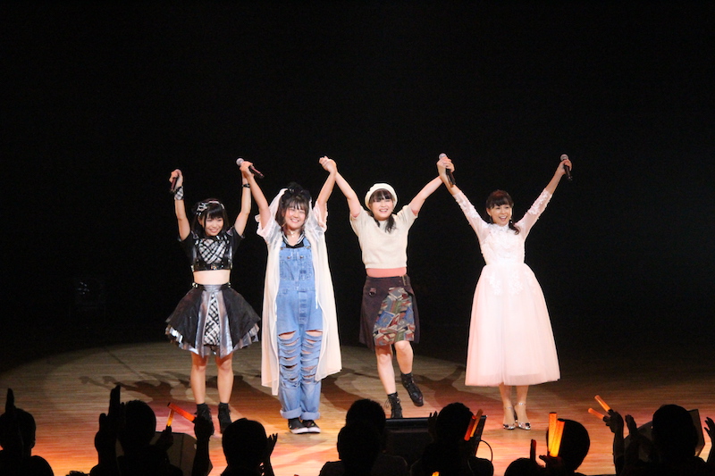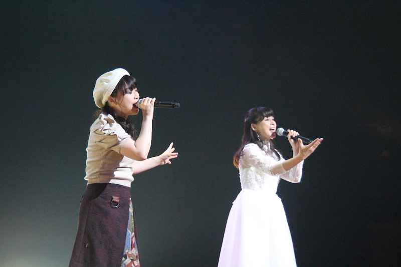 更にここでコラボコーナー第2弾として、岩男潤子が今井麻美を呼び込み、岩男潤子の楽曲「手のひらの宇宙」を二人で熱唱。ここで終了かと思いきや、最後に出演者全員が登場! 岩男潤子、今井麻美、桃井はるこ、亜咲花の4人で、今井麻美が作詞作曲した東日本大震災復興支援チャリティーソング「いっしょ。」を全員で熱唱してフィナーレ。4人のパフォーマンスと充実したコラボレーションに、会場に集まった観客も大満足の1日となった。