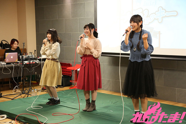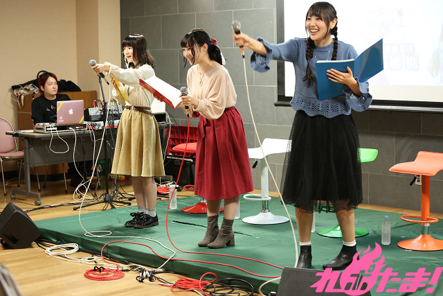 当日は陽吉愛菜役・石橋桃さん、葭島雪乃役・長久友紀さん、桑園真琴役・和多田美咲さん、そしてゲストに原奈津子さんが登場。トークや企画、ライブで盛り上がった。