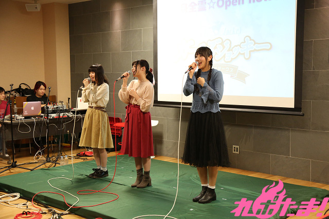 最後はライブコーナー。石橋さん、長久さん、和多田さんにより番組のオープニングテーマ「全身全霊Open☆Now!」とエンディングテーマ「Go Way!」が披露され、客席からはサイリウムの光がまたたいた。