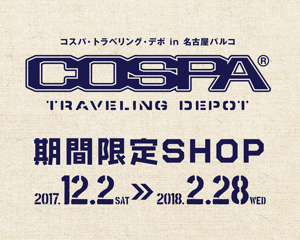 ●コスパ/2017年12月2日(土)~2018年2月28日(水)名古屋パルコに「コスパ・トラベリング・デポ in