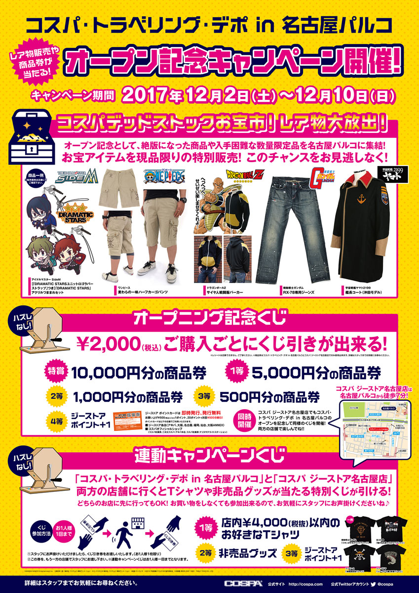 「コスパ・トラベリング・デポ in 名古屋パルコ」と「コスパ ジーストア名古屋店」連動企画!