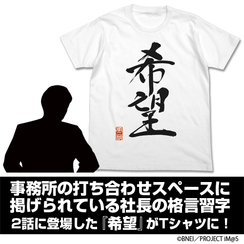 事務所の打ち合わせスペースに掲げられている社長の格言習字2話に登場した『希望』がTシャツに!