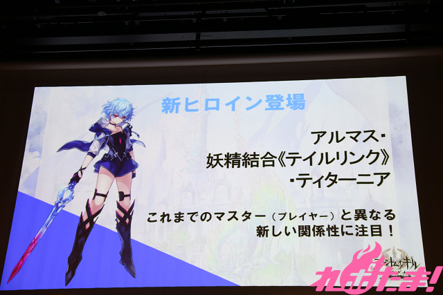 まずは本作のプロデューサーである今泉潤氏からコンセプトについて紹介。「まずは新ヒロイン・アルマスの登場です。これまでのマスター(プレイヤー)と異なる新しい関係性にも注目してください。また、新ナビゲーションキャラクターや、モラルタとベガルタという多重人格の謎の双子姉妹も登場します。