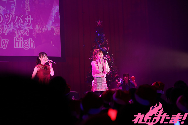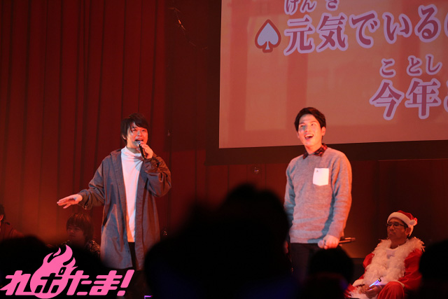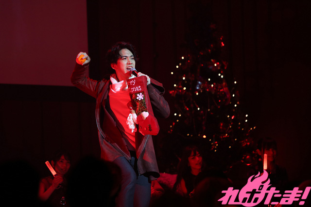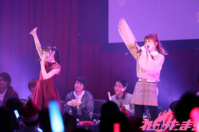 『カラオケMAX』名物の「縛り」コーナーでは、今回は「クリスマス」にちなんだ曲を歌唱。「12月のLove Song」をチョイスした鈴木さんは、サングラスをかけてGACKT気分でノリノリ。間奏ではトランプを使った手品も披露し、パーティー感もバッチリ! 伊東さんは某フライドチキンのCMでもおなじみ、竹内まりやの「すてきなホリデイ」をチキン(のぬいぐるみ)を客席に向けて投げながら歌唱した。一方の土岐さんは、ヒャダインの「クリスマス?なにそれ美味しいの?」を選曲し、恋人との予定がないファンと傷をなめあい(笑)、福原さんは水樹奈々の「深愛」を歌い上げて空気を一変させた。