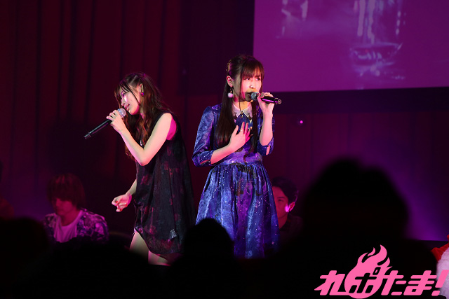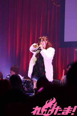 こちらも恒例の「ものまね」コーナーで石原さんがエプロンをつけて見せてくれたのは「慎吾ママのおはロック」。慎吾ママならぬ「夏織ママ」に客席から大歓声が! 秋奈さんはアリアナ・グランデのものまねを披露。正対した小山さんが焦るなか(笑)、流暢な英語で「Break Free ft. Zedd」を歌い上げた。そのほか、土岐さんが「100円ショップで購入した」というサングラス(ピンホールメガネ)を身につけて井上陽水のものまねを見せ付けるなど、終始笑いが起きていた。