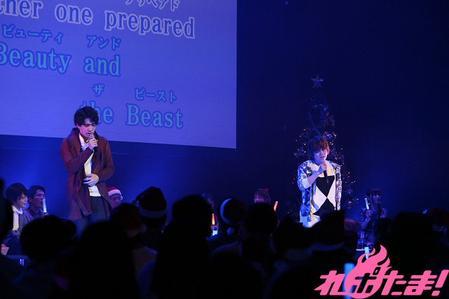 最後は、ここでしか見られない組み合わせで楽曲を披露する「デュエット」コーナー。まずは石原さん&秋奈さんがテレビアニメ『アイカツ!』第2シーズンOPテーマ「KIRA☆Power」で聖夜をキュートに演出すると、鈴木さんと土岐さんによるテゴマスの「ミソスープ」で心がほっこり。かと思うと、立花さんと福原さんがボーカロイド・初音ミク/鏡音ルカの「magnet」で思わず赤面してしまうようなアツい絡みを見せつけ、最後はここまでお笑い担当だった(?)内田さんと伊東さんが映画『美女と野獣』主題歌「Beauty and the beast」でビシッと締めてみせた。