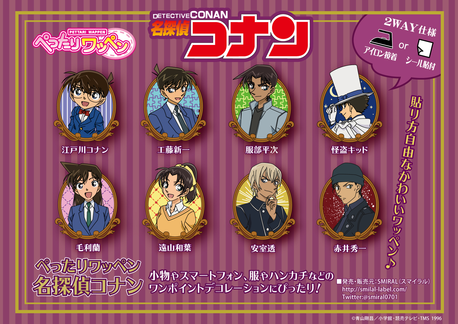 ぺったりワッペン「名探偵コナン」が登場! アイロン貼付、シール貼付の2WAY仕様ができる、かわいくてオシャレなワッペンです♪身の回りのアイテムをかわいくデコレーションできます。(ブラインド仕様)