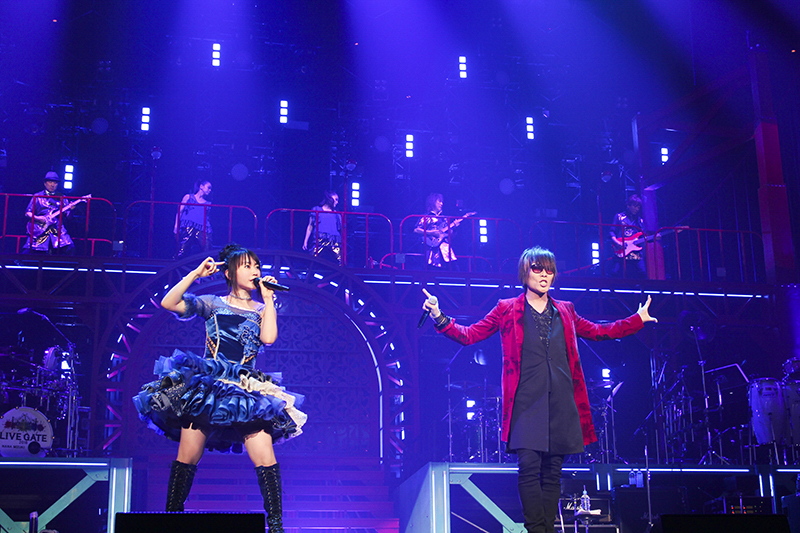 今回のステージセットは「GATE」にちなみ、アメリカにある「ゴールデン・“ゲート”・ブリッジ」をイメージして作ったとのこと。橋の下には門があり、このライブタイトルにぴったりのセットになっていた。
