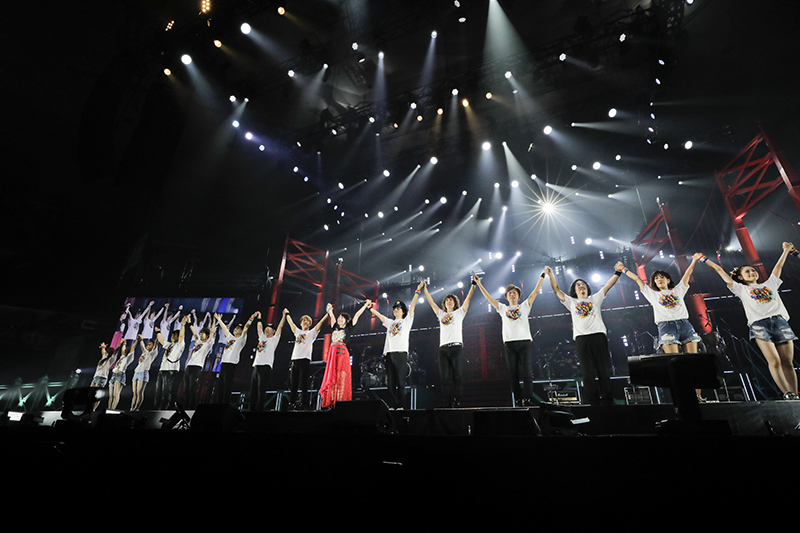 「最後は思いっきり、みんなと声をあわせていきたいなと思ってます!最後に歌う曲は12年前この場所で初披露した、そして私にとって作曲という大きな大きな扉を開けたあの曲です」と話し、「SUPER GENERATION」を披露。