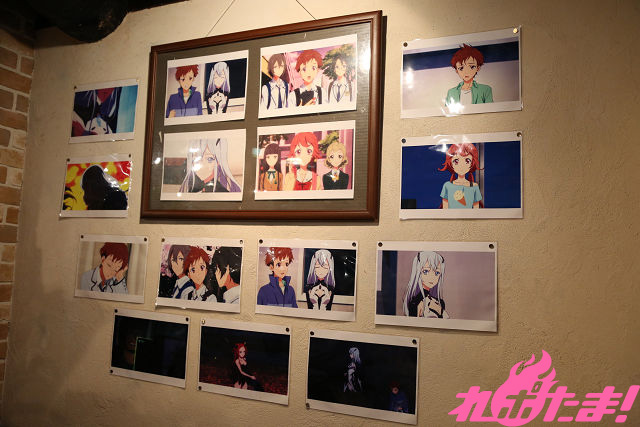 ▲店内の様子。場面写や原作イラストの紹介、レジではキャラクターグッズの販売も。さらに特大POPなどの展示も見逃せない!