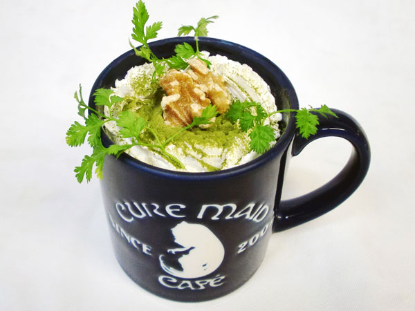 抹茶ミルク+ホイップ+煎茶パウダー+クルミ+チャービル