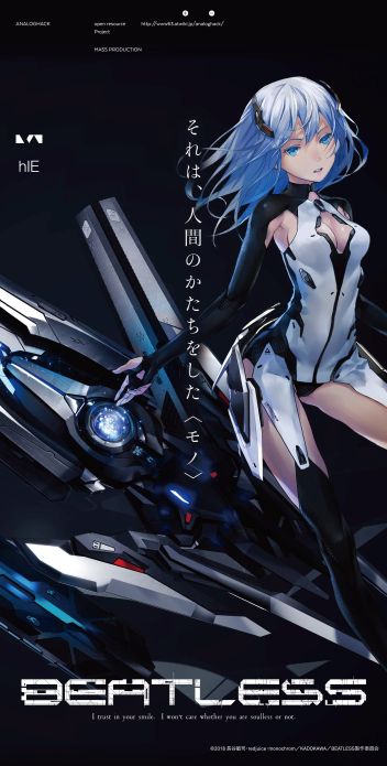 「My Humanity」(ハヤカワ文庫JA)で第35回日本SF大賞受賞、「メタルギア」シリーズのノベライズなど、綿密で壮大な世界観を生み出し続けるSF作家・長谷敏司による原作「BEATLESS」。監督には「機動戦士ガンダム00」や『楽園追放-Expelled From Paradise- 』など圧倒的支持を得る水島精二。原作のキャラクター原案は架空のアーティスト「EGOIST」のイラストや、伊藤計劃原作のアニメ映画『屍者の帝国』『ハーモニー』『虐殺器官』など、唯一無二の表現が国内外問わず高い評価を得ているイラストレーター・redjuice.。豪華クリエイター陣が送る、「ヒト」と「モノ」のボーイ・ミーツ・ガール。MBS/TBS/BS-TBS”アニメイズム”枠で放送中。