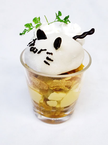 ハムスケに見立てた大福を盛りつけたパフェ。