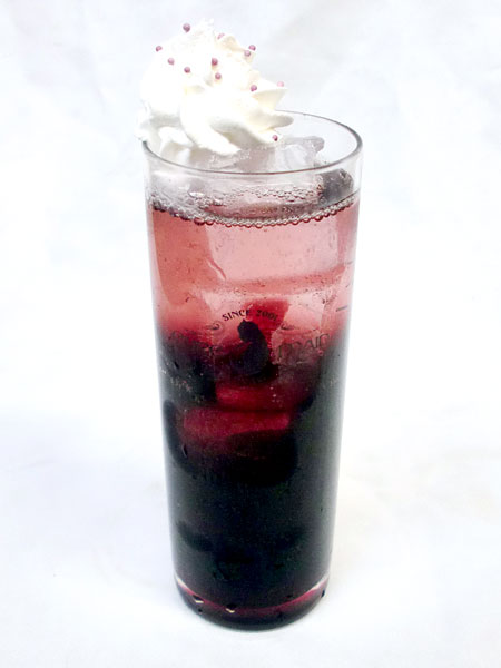 巨峰シロップ×ぶどうジュース×ソーダ+ホイップ+紫アラザン