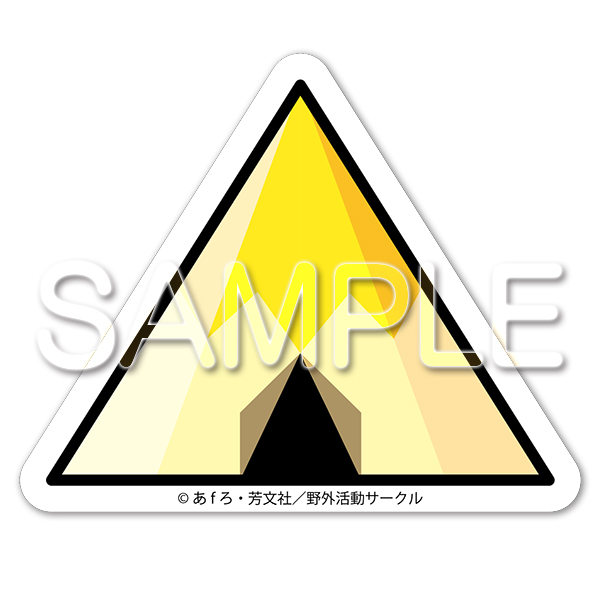 現在放送中のTVアニメ「ゆるキャン△」のオープニングやコミックでおなじみのあのテントのマークと、7話で犬山あおいが部室で描いた「テン柴」がまさかのステッカーになって登場!