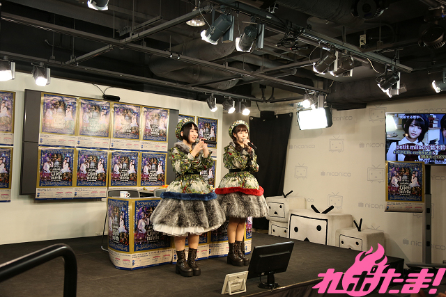 東京・池袋にあるニコニコ本社には約100人のムッチュ☆(ファン)が集まり、ふたりのコミカルな解説付きで、3月28日に発売された4th LIVE Blu-ray『ラ・プチミレッタ~小さな淑女の童話歌劇』の見どころを堪能。