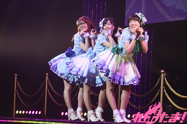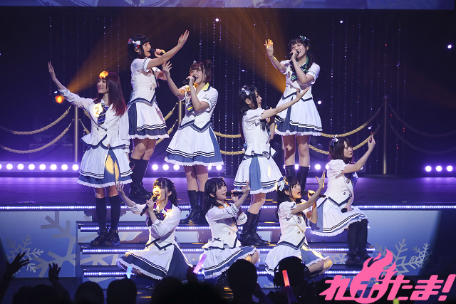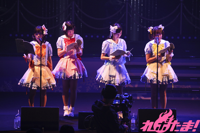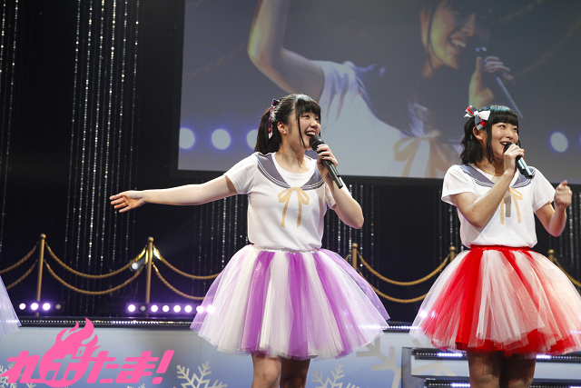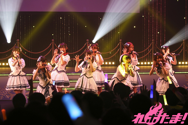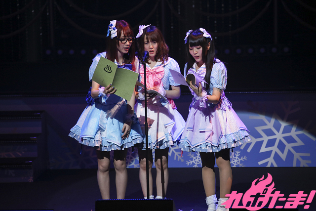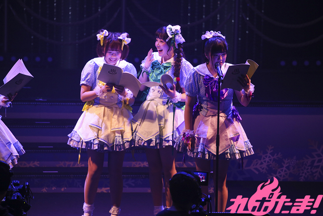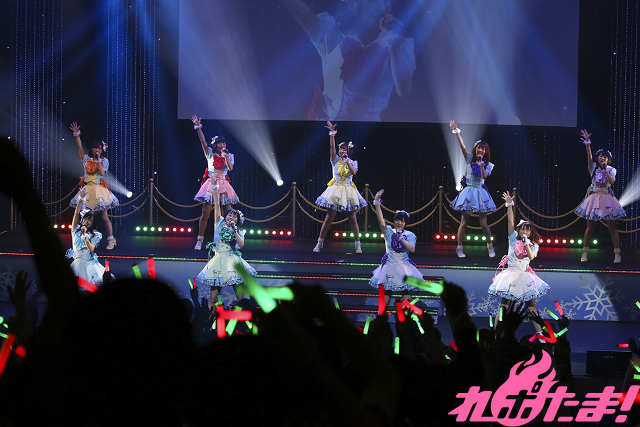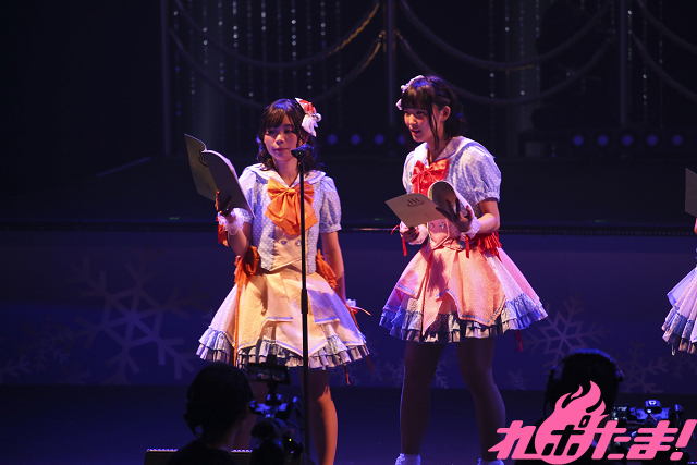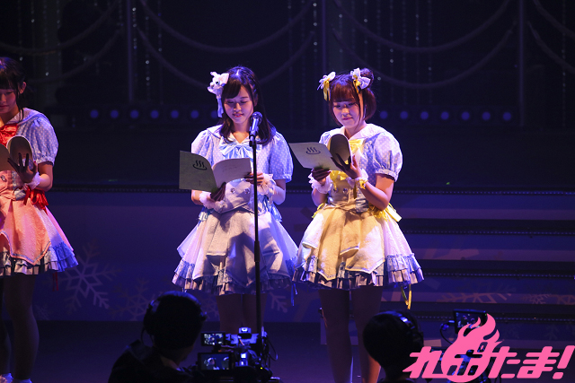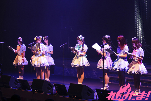 ミニドラマ「クリスマス? なにそれおいしいの?」を9人で生朗読。会場にしばしの休息のち、ユニットパートへと移る。高橋、日岡、遠藤のしゃんぷーはっとが王道アイドル路線の「ロマンスの林檎」を繰り出せば、高田、篠田、桑原のSPicAが元気な「おはようジャポニカ」で返す。会場のファンも加わり《そいや!そいや!そいや!》の大合唱と相成った。