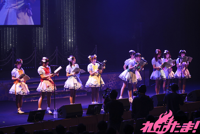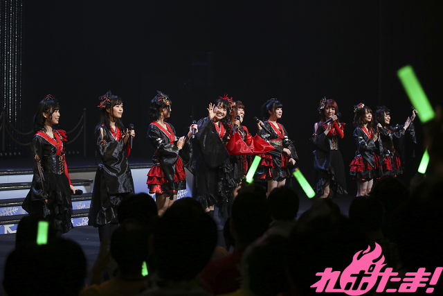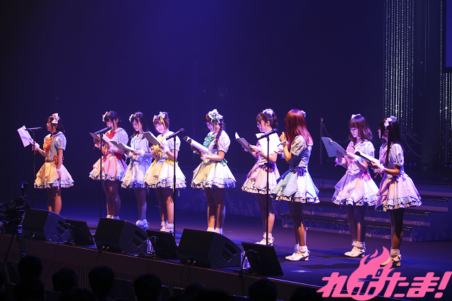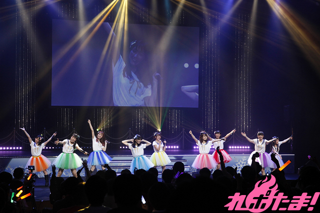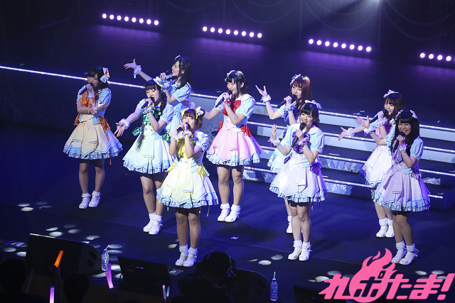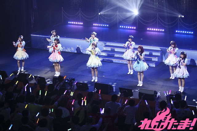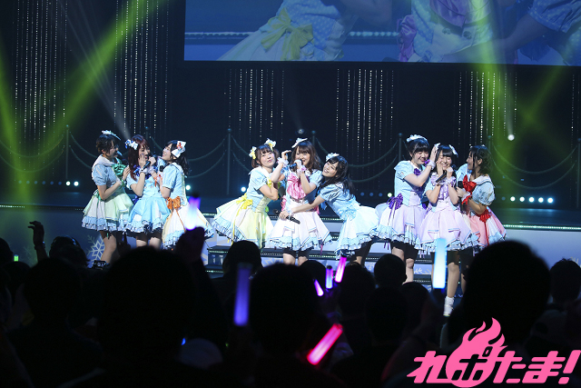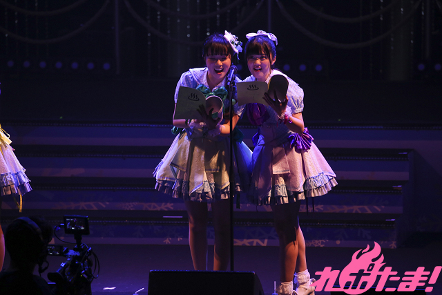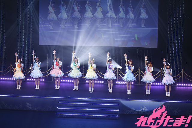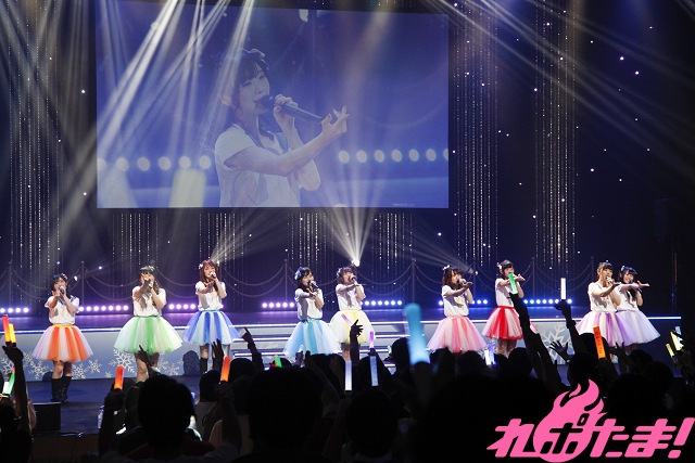 サードライブ、別府でのイベントを始めとする、怒涛の新情報ラッシュを挟んで本編ラストはファーストミニアルバムのリード曲「未来イマジネーション」。落ちサビでの桶のSE「カコン」や背中をタオルで洗うようなダンスなど「温泉むすめ」を代表すると言って過言でないこの楽曲を9人は力強く歌い、本編は幕を閉じる。