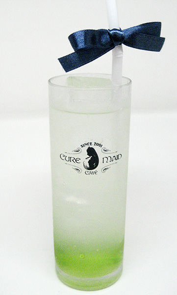 グリーンアップルシロップ×レモンスカッシュ+白ストロー+青リボン