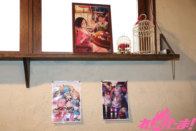 ▲店内の様子。ゲームに登場するキャラクターの美麗なイラストが飾られたり、先行グッズ販売も!