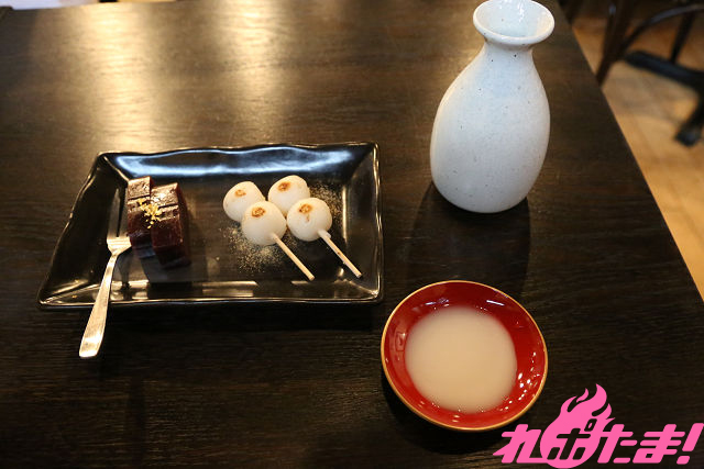 甘い羊羹に甘さ控えめの団子を甘酒・日本酒で召し上がれ。