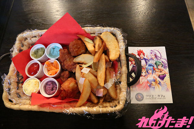 「六人の英雄、ひとつの想い」のカードをイメージして、食べられる紙吹雪が散った、唐揚げ&ポテトのパーティーセット!