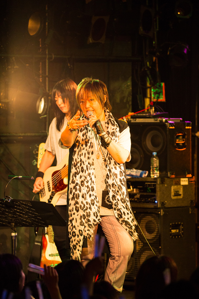 19時、開演時間に、バンドメンバーとともに登場し、最初に披露した楽曲は、「幽☆遊☆白書」蔵馬のキャラクターソングである「暗闇に紅い薔薇」と「氷のナイフを抱いて」の2曲。蔵馬を彷彿とさせる一輪の紅い薔薇を手に取り、2曲を歌い上げると、薔薇を客席に放ち、大きな歓声があがった。続けて、「魔法騎士レイアース」イーグルのキャラクターソング、「RUN」を披露。ライブスタートから客席のテンションは早くも急上昇。