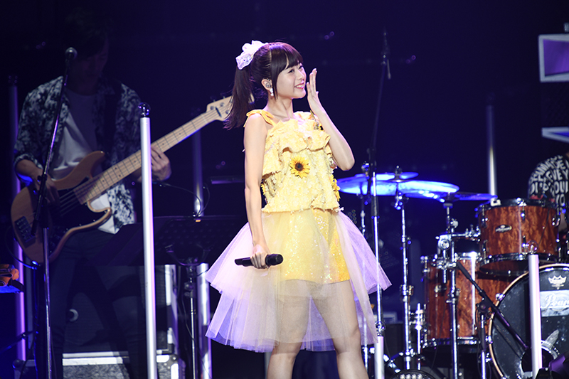 「夏らしい曲を歌いたいなと思います」という言葉の後、披露されたのは「夏の約束」と「夏夢」。ひまわりの衣装にぴったりな爽やかな楽曲を、時より観客へ微笑みかけながら歌っていた。