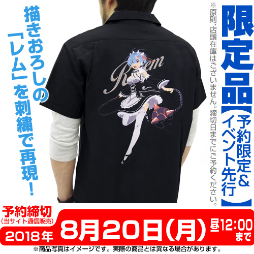 「レム 刺繍ワークシャツ」は、【予約限定&イベント先行】限定品。基本的には店頭に並ばないので確実に手に入れたい方は【2018年8月20日(月)正午12:00まで】となる一般販売分のご予約をお忘れなく!
